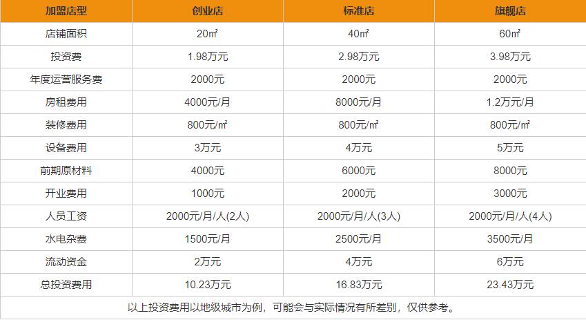 投资小伙伴按所选择冒蜀黍不同店型及代理等投资类型向总部交纳相应的费用;